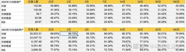 至于用户留存,雪球用户@中年电竞选手去QuestMobile拉了数据后发现,“B站的新进用户留存只有抖音的一半,只与快手、快手抖音极速版相当。”