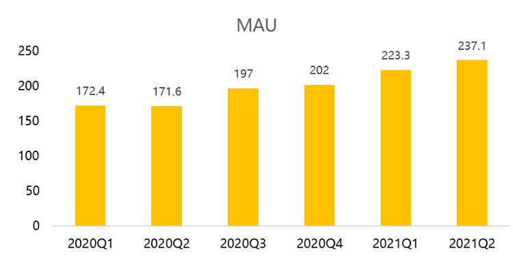 更糟的是,B站用户基本盘(MAU2.37亿、DAU6300万)与抖音、快手差距明显,但Q2季度烧了13.99亿营销费用(同比增加107%),MAU、DAU增速却在放缓——MAU同比增速从Q1的30%增加至Q2的38%,DAU同比增速从Q1的18%增加至Q2的24%。