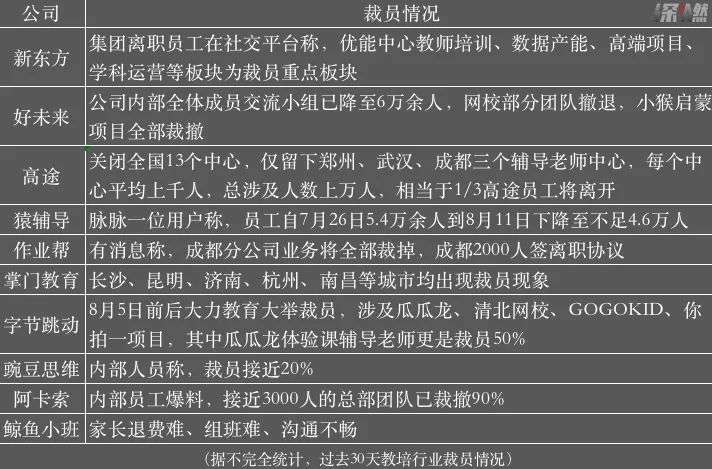 深燃统计了过去30天头部教育机构的裁员情况。从目前来看,秋季转型尚未落定,行业大收缩的终局还远远没有到来。