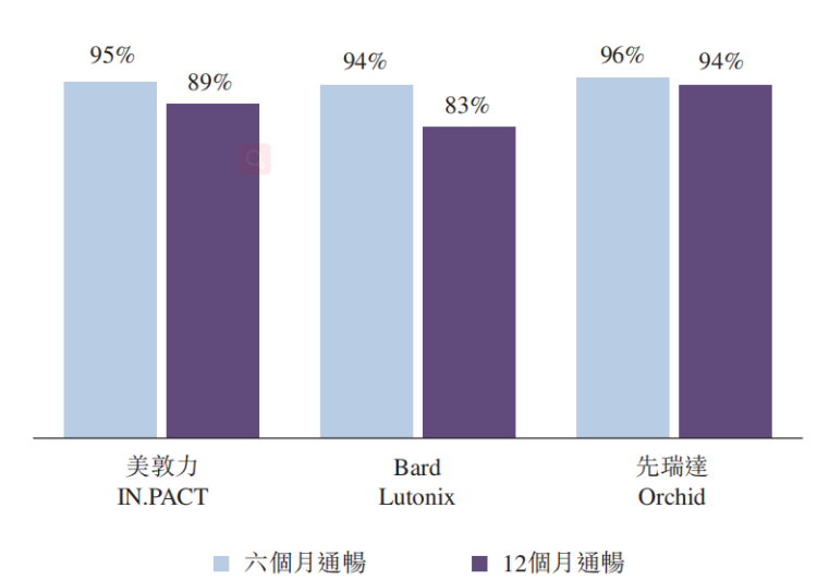 再对比一下我国同行业内的DCB产品。据莱比锡大学医院的追溯分析显示,先瑞达的核心产品AcoArt Orchid® & DhaliaT可媲美相国际巨头美敦力及C.R. Bard。对于基线特征类似的患者,使用AcoArt Orchid® & DhaliaTM治疗的患者于手术后六个月及十二个月均具有最高的初级通畅率,可见先瑞达的DCB领域技术过硬。