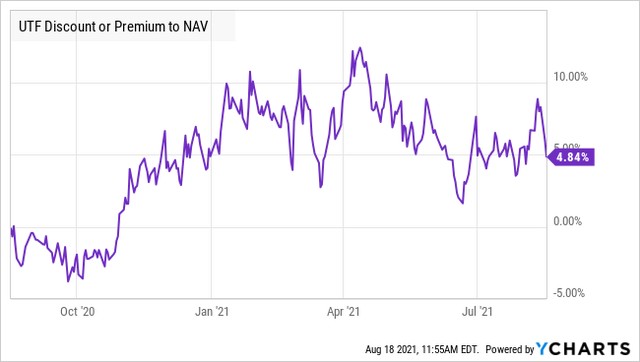 Cohen & Steers在从有形资产和其他收入来源(如优先证券)中获取回报方面拥有超过35年的经验。其目前收益率为 6.5%,股息按月支付。自2020年美国总统大选以来,UTF的交易价格一直高于其资产净值,这主要是由于拜登对可持续能源和改造国家基础设施的承诺。当前5% 的资产净值溢价处于较低水平,为收益型投资者提供了一个机会。