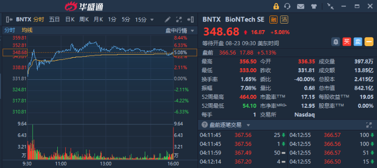 BioNTech SE(BNTX)盘前涨5.1%,辉瑞(PFE)涨3.3%,据纽约时报周六报道,美国可能在周一全面批准辉瑞新冠疫苗。