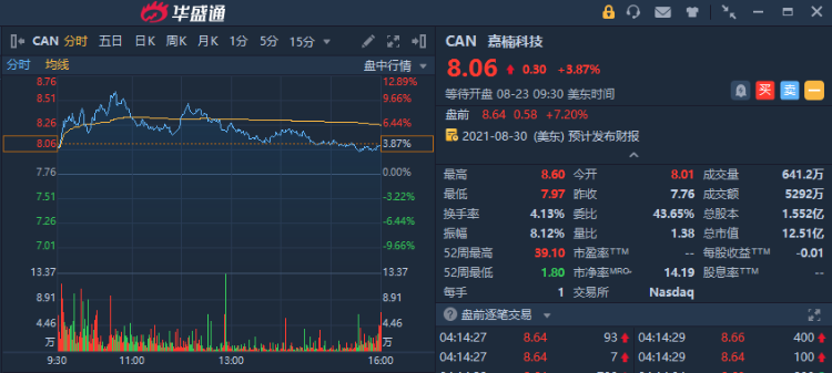 华盛资讯8月23日消息,今日美股盘前,美股区块链概念股盘前走高,嘉楠科技(CAN)涨7.2%,Riot Blockchain(RIOT)涨超6%,Marathon Patent(MARA)涨超5%,Coinbase(COIN)涨2.5%,今日比特币自5月以来首次突破50000美元/枚关口。