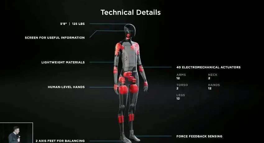 其次,Tesla Bot 和汽车相比,人机交互系统也有一些区别,汽车配备了中控大屏,而 Tesla Bot 仅脸部屏幕可以显示信息,这意味着它在交互方面更依赖语音。