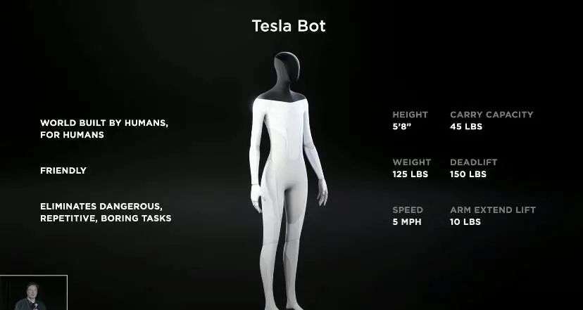 马斯克对于 Tesla Bot 的期望,从机器人的「三围」数据就可以看出。