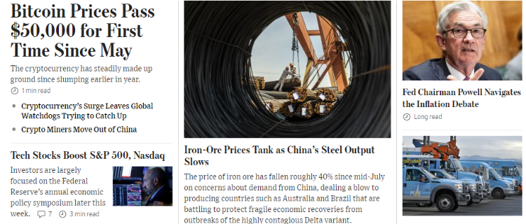 自7月中旬以来,由于担心中国的需求会减少,铁矿石价格下滑了约40%——中国的钢铁生产量占全球的一半以上。 需求下行打击了铁矿石输出国,尤其是澳大利亚和巴西,两国正在努力让脆弱的经济免受德尔塔毒株爆发的影响。