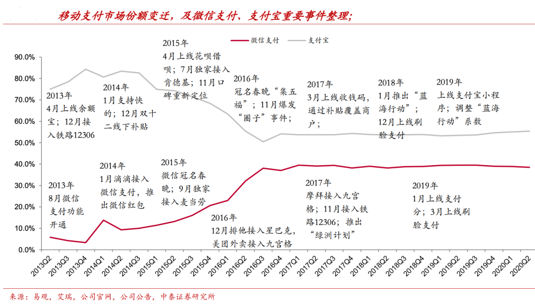 回顾这些关键举措,会发现“造场景”其实是微信支付一直在做的事,这些动作也直接决定了微信支付的市场地位。