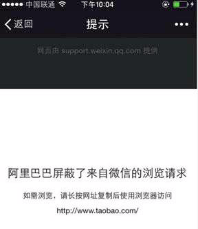 然而那一天晚上,所有人发现任何从微信点击进入的淘宝链接都无法正常跳转了,而是统一转到了一个下载淘宝App的固定页面,淘宝正式封杀微信。