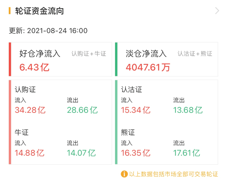 其中,窝轮总成交95.23亿港元,牛熊证总成交69.38亿港元。