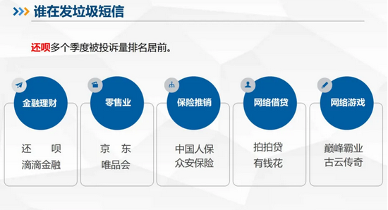 在发送垃圾短信方面,还呗多个季度被投诉量排名靠前。