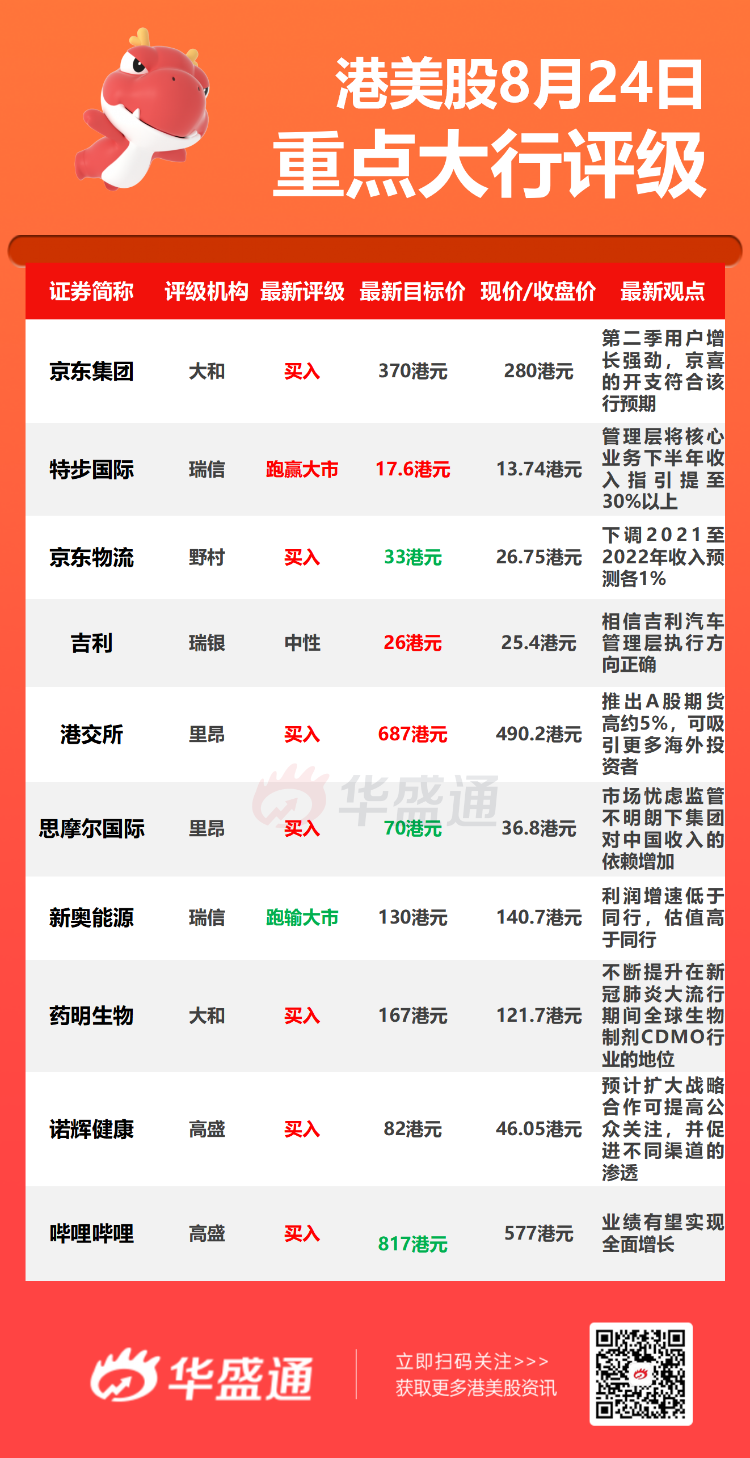 花旗上调京东2021-23年的收入预测各0.3%,非通用会计准则下的净利润预测亦调升6.7%,以反映公司表现及其战略投资,但下调公司的ADR目标价由115美元降至108美元。