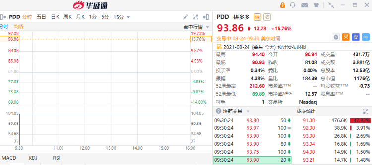 拼多多二季报扭亏为盈:营收230.5亿元,同比增长89%,归属于普通股股东的净利润为24.15亿元,扭亏为盈,上年同期净亏损8.993亿元。