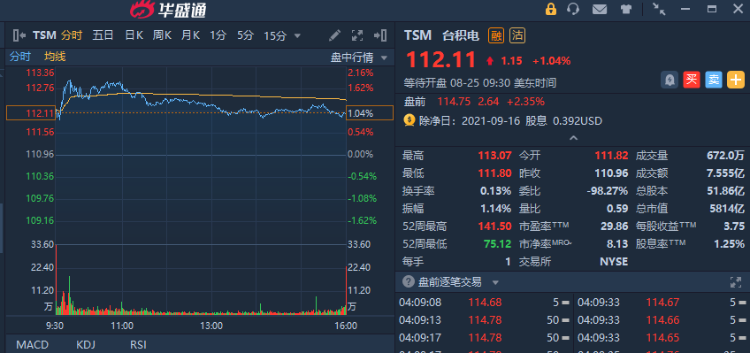 台积电(TSM)盘前涨2.35%,传台积电通知客户全面涨价20%,即起生效。