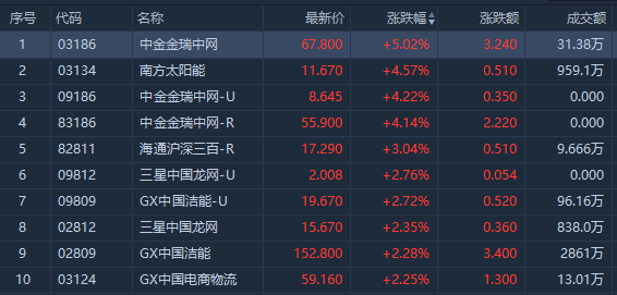 今日港股市场,涨幅居前的ETF有南方太阳能 $03134.HK 上涨4.57%,成交额达959.1万港元;海通沪深三百-R $82811.HK 上涨3.04%,成交额9.666万港元。