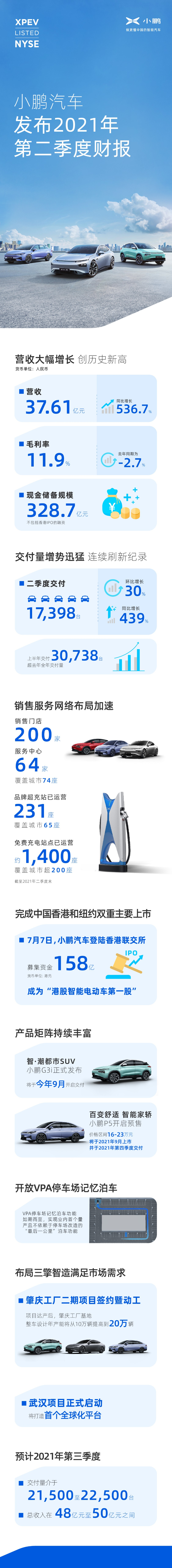 华盛资讯8月26日消息,小鹏汽车-W于今日美股盘前公布了其截至2021年6月30日的的第二季度及上半年业绩。