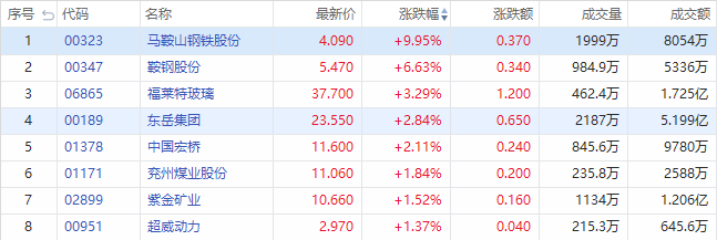 华盛资讯8月26日消息,部分碳中和概念股逆市走强,截至发稿,马鞍山钢铁股份上涨9.95%;鞍钢股份上涨6.63%;福莱特玻璃上涨3.29%;东岳集团、中国宏桥涨超2%;紫金矿业、超威动力等灯涨超1%。