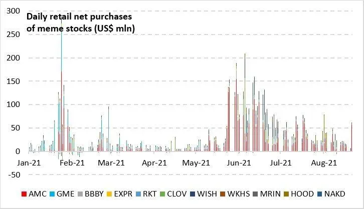 此前,散户曾吹嘘他们购买和持有Meme股的意图,不过他们对这些股票的需求放缓也较为明显,如最早的Meme股游戏驿站。Vanda数据显示,37只散户最爱股在本周二录得6月来最高涨幅后,市场需求显示疲软。