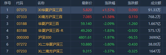 沪深300指数收跌1.97%。其中,华夏沪深三百-R(83188.HK)跌1.83%,成交额575.1万港元;华夏沪深三百ETF(03188.HK)跌2.09%,成交额1.667亿港元。