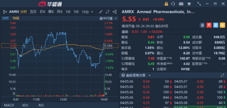 华盛资讯8月26日消息,今日美股盘前,Amneal Pharmaceuticals(AMRX)盘前涨18%,此前其治疗帕金森氏病药物IPX-203在3期试验中取得积极结果。