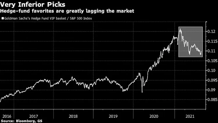 但近期这类基金也遇到了大麻烦,高盛钟爱的一揽子股票6个月收益回报率比标普500指数增长率低了13个百分点。据上周的一份报告显示,这是自2008年以来最糟糕的表现,令高盛对冲基金部门表现黯然失色。