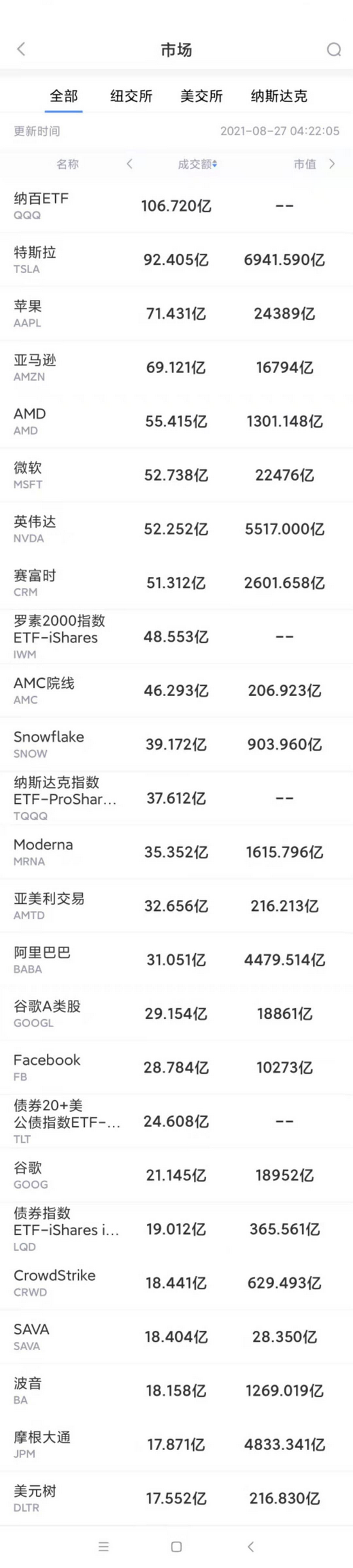 以下为美股当日交易最活跃的20只股票(按成交额):