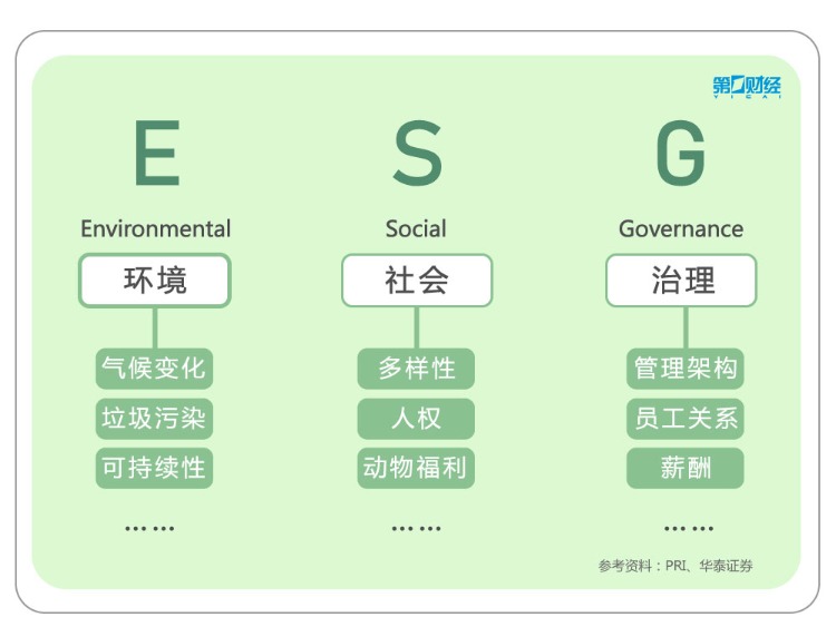 具体来说,环境主要包含气候变化、可持续性等议题;社会主要包含多样性、人权等议题;而治理则主要包含管理架构、薪酬等议题。