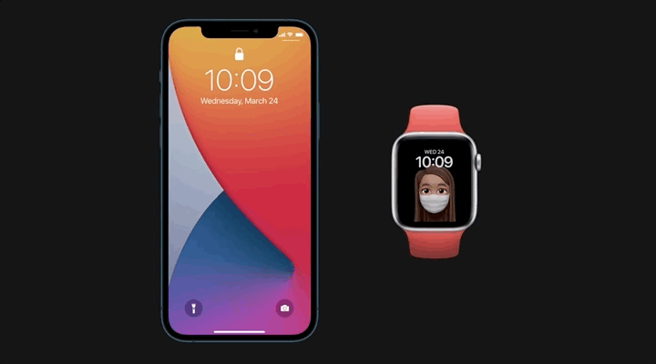 该功能可以在系统检测到用户佩戴口罩时,利用手表解锁iPhone,