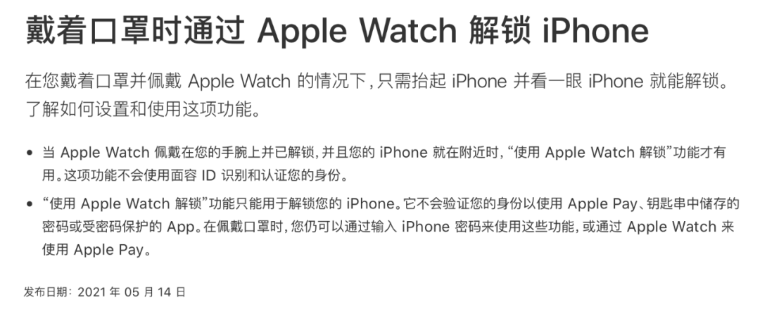 此前,苹果添加了 「使用Apple Watch解锁」 的功能,作为应对戴口罩不便解锁的 权宜之计 。