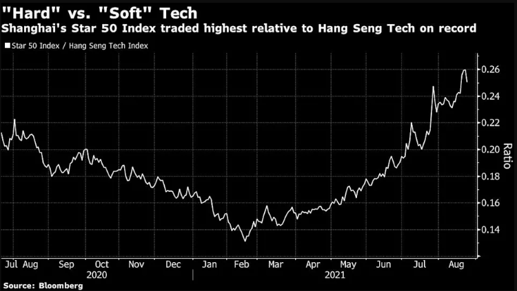 此外值得关注的还有,今年以来,香港恒生科技指数暴跌了25%,该指数高度集中了中国消费互联网股票,而同时段,云集半导体、可再生能源和高端制造业公司的中国科创50指数涨超6%。