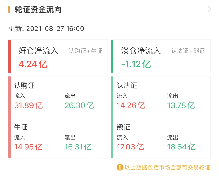 其中,窝轮总成交88.92亿港元,牛熊证总成交72.75亿港元。