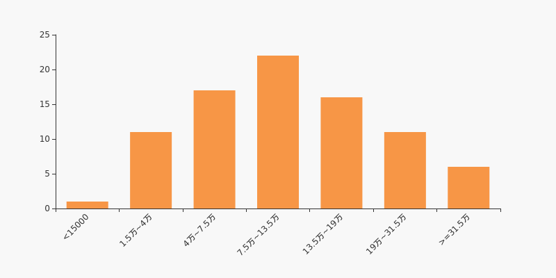 仁东控股股东户数低于行业平均水平。根据Choice数据,截至2021年6月30日非银金融行业上市公司平均股东户数为14.36万户。其中,公司股东户数处于7.5万~13.5万区间占比最高,为26.19%。