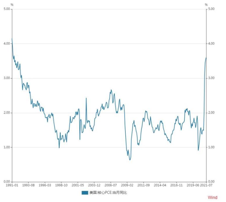 美国商务部周五发布数据显示,美国7月PCE物价指数同比升4.2%,预期升4.1%,前值升4%;环比升0.4%,预期升0.4%,前值升0.5%。美国7月核心PCE物价指数同比升3.6%,创1991年5月以来新高,预期升3.6%,前值由升3.5%修正为3.6%;环比升0.3%,预期升0.3%,前值由升0.4%修正为升0.5%。