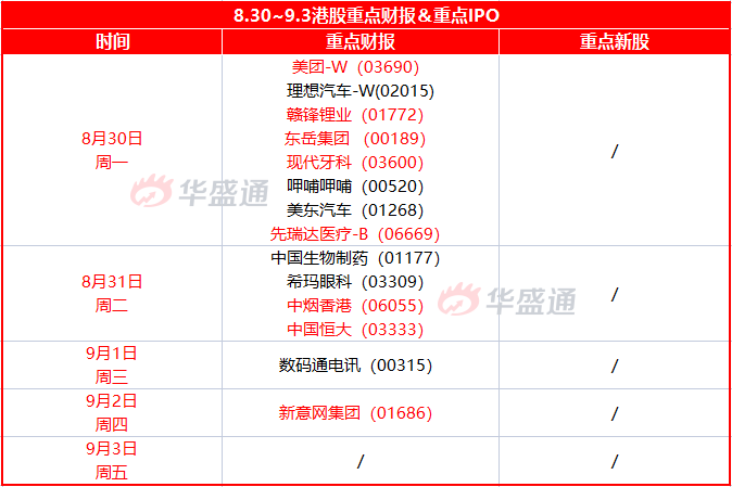 财报方面,美团、赣锋锂业、理想汽车、中国恒大、东岳集团等重磅个股将公布业绩报告。