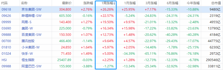 大反攻!恒生科技指数本周大涨7.25%