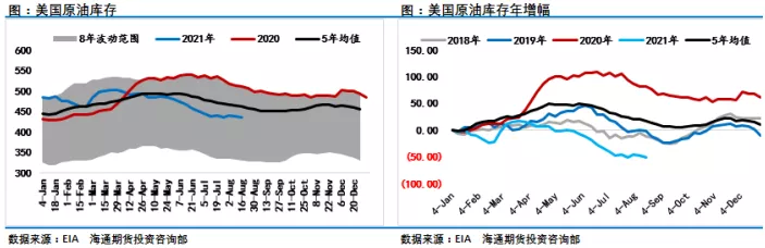 上一周分析原油市场供需局势的时候,我们提到油价跌得太快超出了大部分投资者预期,但原油市场的基本面真显然并没有那么糟糕。EIA库存数据显示,原油库存减少298万桶,预期减少200万桶,前值减少323.3万桶;汽油库存减少224.10万桶,预期减少110万桶,前值增加69.6万桶;精炼油库存增加64.50万桶,预期减少90万桶,前值减少269.7万桶。上周原油出口减少61.9万桶/日至281.2万桶/日。上周进口615.7万桶/日,较前一周减少19.3万桶/日。原油产量维持在1140万桶/日不变。EIA报告显示,上周美国原油库存跌至2020年1月以来的最低水平,美国东海岸汽油库存跌至2018年3月以来的最低水平。总体来看,美国原油库存8月份虽然下降速度有所减缓,但原油整体仍然是去库的,但因为速度减缓,对油价推动力度明显减弱。