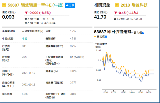 2、看错方向:瑞声瑞通一甲牛(53687.HK),上周五下跌8.8%。