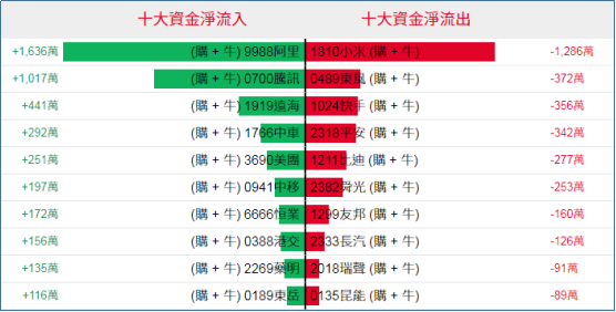 上周五南向资金继续录得净卖出34.37亿港元。腾讯控股、安踏体育、金蝶国际分别遭净卖出6.08亿港元、4.3亿港元、3.6亿港元;比亚迪股份逆势获净买入2.97亿港元。