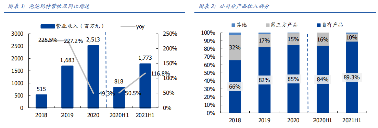 2、线上渠道:2021上半年线上实现营收6.78亿元(同比增长102.9%),主要受益于泡泡抽盒机(3.25亿元)、天猫旗舰店(2.19亿元)以及新渠道京东(4680万元)的扩张。