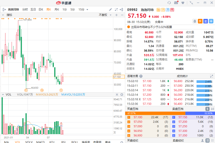 在8月30日早盘,有一家公司股价突然“狂飙”,一度涨幅超过15%,这家公司就是有着潮流玩具龙头之称的泡泡玛特。
