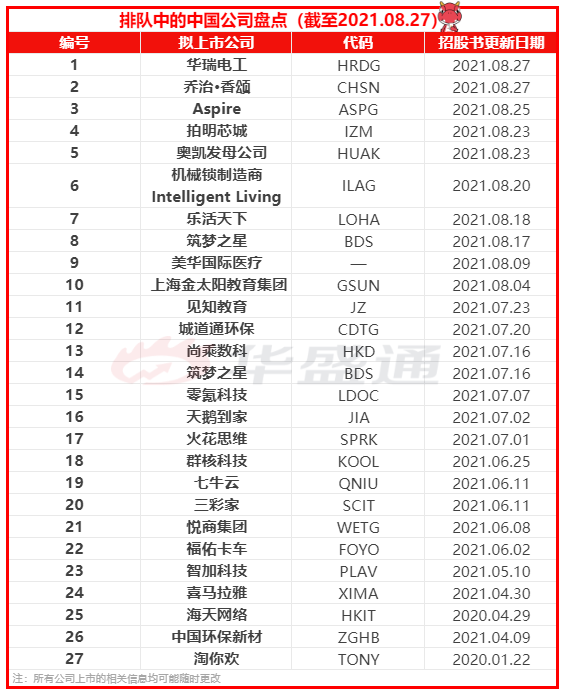 此外,近期新增2家向SEC递交IPO申请的中国公司,其中包括深圳拍明芯城、美华国际医疗,还有华瑞电工、香颂及电子烟品牌商Aspire等多家公司于近期更新招股书。