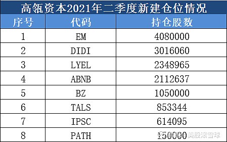 (5)其他领域。二季度,高瓴新建仓了滴滴、Boss直聘和怪兽充电三家中概新股,以及美国的机器人公司PATH,并大幅减持了北美饮料公司KDP。