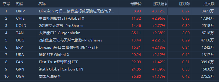 具体到ETF方面,能源ETF中美国汽油基金 $UGA 上涨1.17%,成交额达275.5万美元。