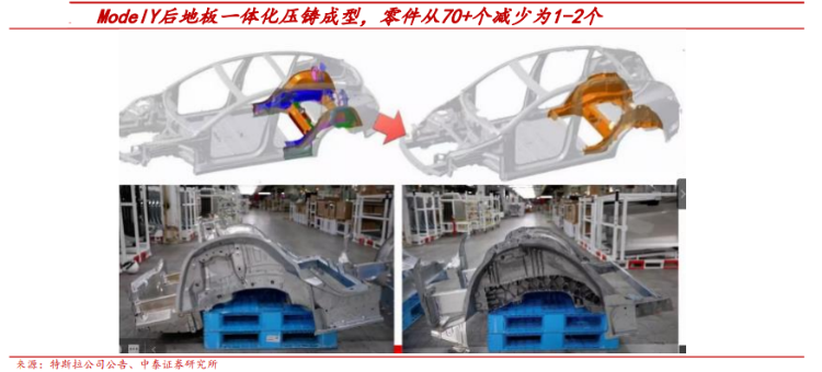 同时一体压铸工艺具有减少车身零件数量、简化供应链环节、降低车重减少电池成本、原材料利用率高、工厂占地面积减少等多种优点,是未来行业发展大趋势。