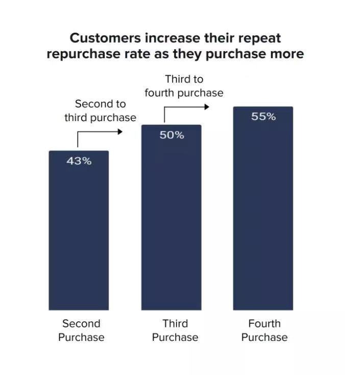 若更细分来看,2016年至2019年在美国市场新获得的用户中,43%已在2020年12月31日之前选择再次购买;在二次购买的用户中,50%选择了第三次购买;并有55%的用户甚至选择了第四次购买。