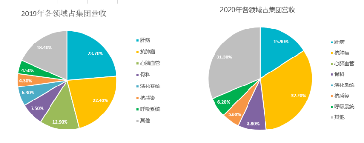 分疾病领域来看,上半年中生制药在抗肿瘤、肠外营养、心脑血管、呼吸、骨科5大核心领域均保持双位数高增长。抗肿瘤药成为公司第一大业务板块,除安罗替尼外,7个品种增速超过50%。