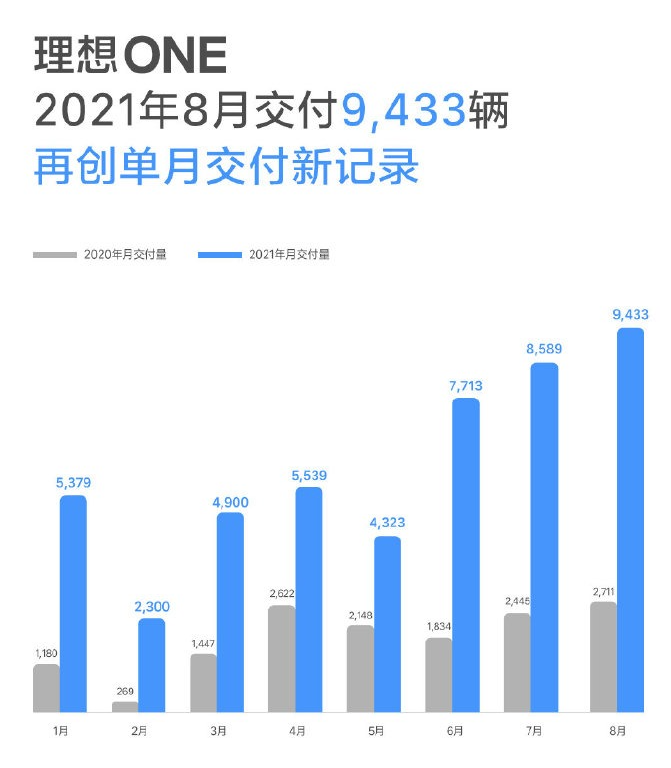 理想汽车(LI):8月交付9,433辆理想ONE,再创新纪录