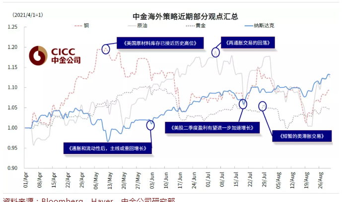 图表: 回顾看,8月以来全球市场在通胀、增长和利率的演绎在多个维度均符合我们此前的判断