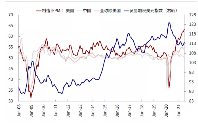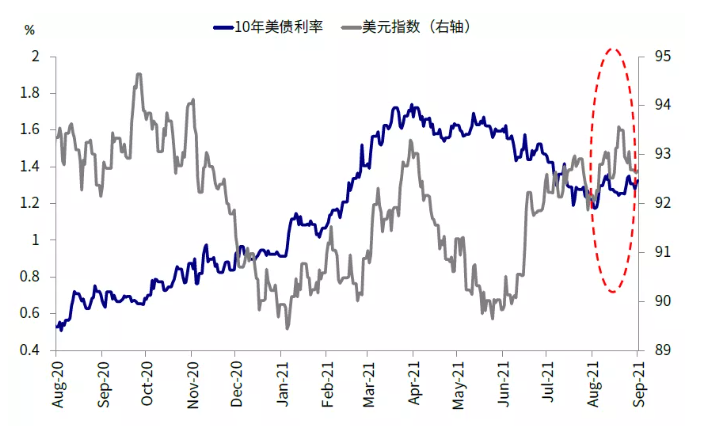 4) 财政政策:除了货币政策外,9月底也是美国财政政策可能出现进展的窗口。目前美国各项财政计划的进展是:5500亿美元基建已经通过参议院,众议院投票未来通过基本问题不大;3.5万亿美元支出方案适用预算调节程序的决议也已经在众议院获批,接下来只待9月15日参议院休会结束后开始商讨进一步细节,包括对于是否加税的安排;债务上限9月底也是一个需要解决的敏感时间点(《美国距新一轮基建和刺激还有多远?》)。相比上一轮1.9万亿美元疫情刺激,本轮财政政策的进展能否带来较强的增长向好预期存在不确定性,主要是由于基建投资规模不算大(5年5500亿美元)、3.5万亿支出中大部分并非实体基建而是human infrastructure、更重要的是加税前景仍不清晰。不过有一点相对确定的,就是财政政策特别是债务上限解决后债券供给的增加,可能会叠加上文中提到的货币政策预期变化给美债利率和美元提供上行“借口”。
