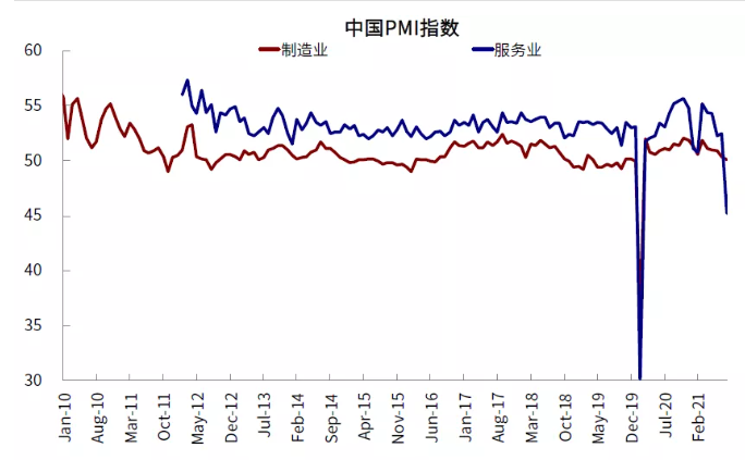 图表: 8月中国制造业PMI逼近荣枯线,非制造业PMI更是快速掉入收缩区间