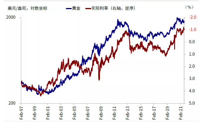 图表:实际利率的上行不利于对利率特别是利率敏感型资产,例如黄金...